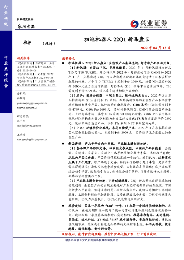 【兴业证券】【20220413】扫地机器人 22Q1新品盘点-12页