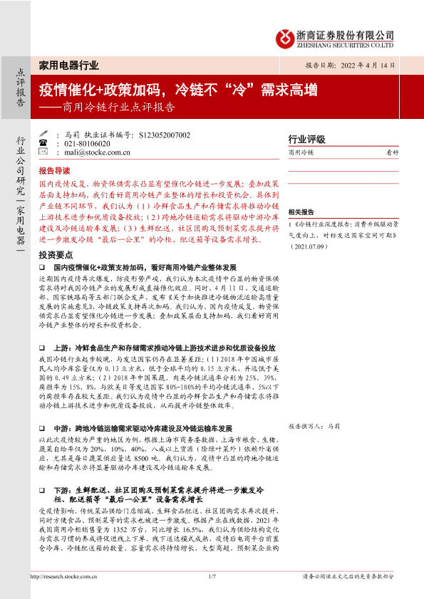 【浙商证券】【20220414】20220414-浙商证券-商用冷链行业点评报告:疫情催化+政策加码,冷链不“冷”需求高增-7页