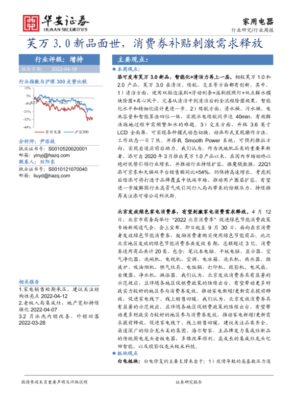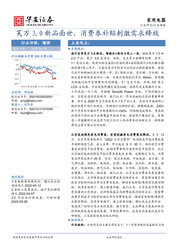 【华安证券】【20220418】20220418-华安证券-家用电器行业周报:芙万3.0新品面世,消费券补贴刺激需求释放-13页