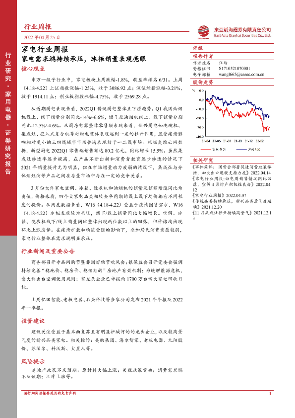【东亚前海证券】【20220425】家电行业周报:家电需求端持续承压,冰柜销量表现亮眼-20页