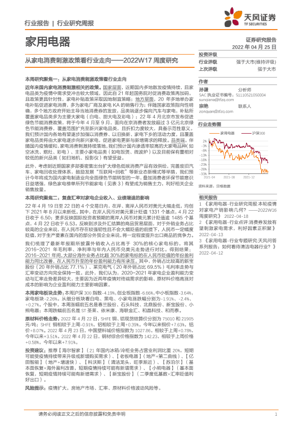 【天风证券】【20220425】家用电器2022W17周度研究:从家电消费刺激政策看行业走向-21页