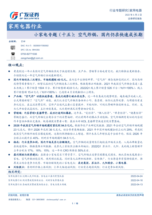 【广发证券】【20220502】小家电专题(十五):空气炸锅,国内仍在快速成长期-16页