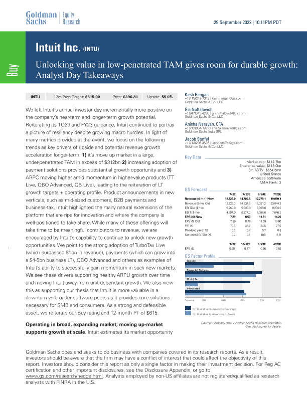 Intuit Market Opportunity Analyst Day Strategic Initiatives Financial Analysis