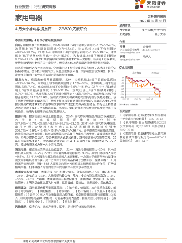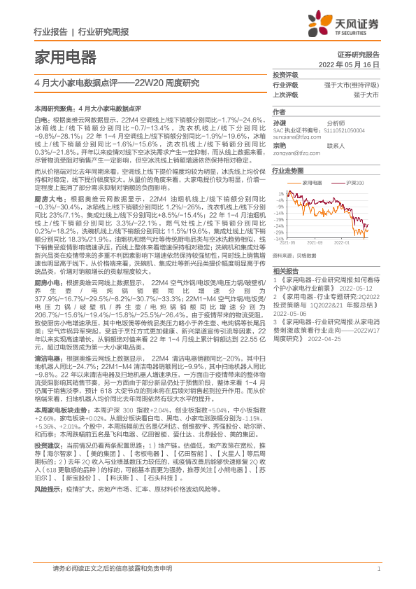 【天风证券】【20220516】家用电器22W20周度研究:4月大小家电数据点评-17页