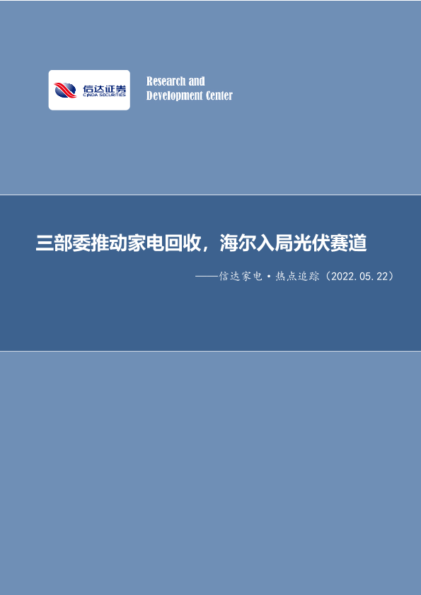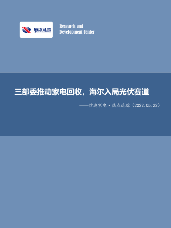 【信达证券】【20220522】信达家电·热点追踪:三部委推动家电回收,海尔入局光伏赛道-12页