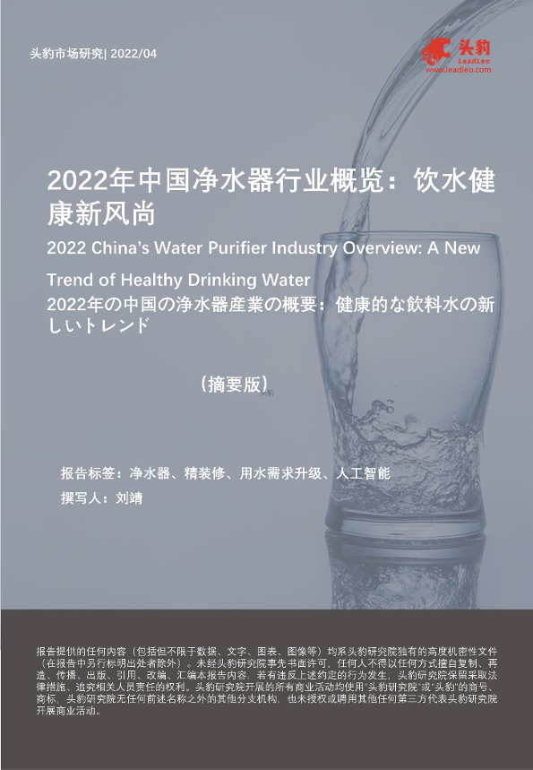 【头豹研究院】【2022】2022年中国净水器行业概览:饮水健康新风尚-10页