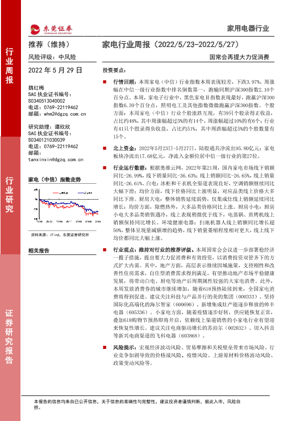 【东莞证券】【20220529】家电行业周报:国常会再提大力促消费-16页