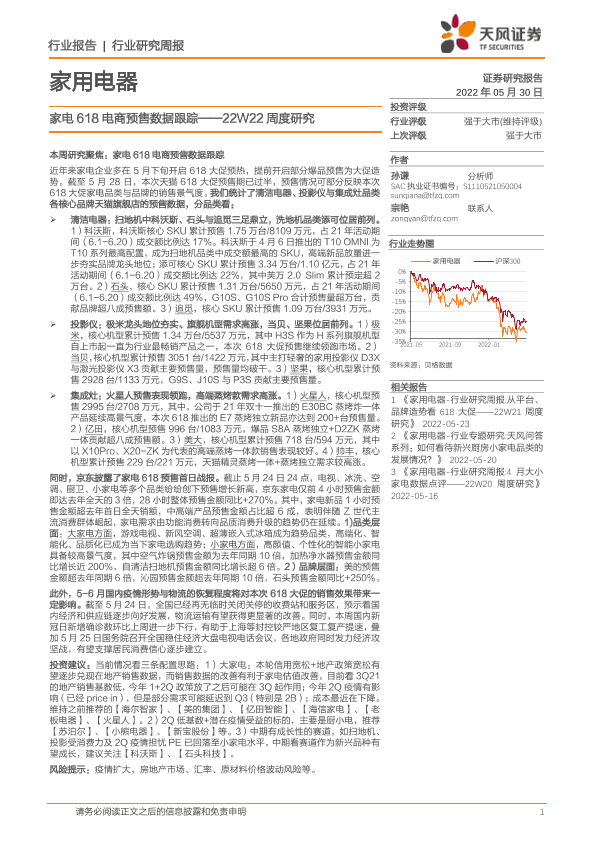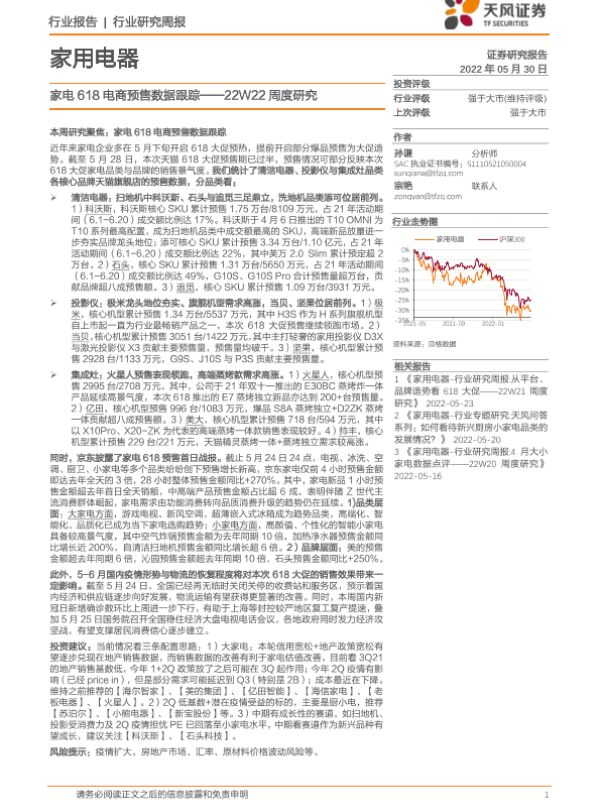 【天风证券】【20220530】家用电器22W22周度研究:家电618电商预售数据跟踪-19页