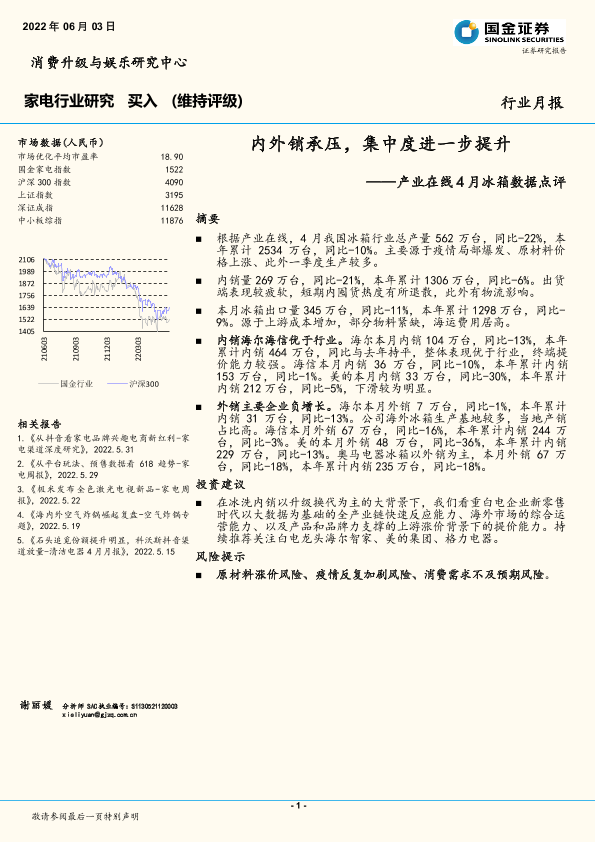 【国金证券】【20220603】产业在线4月冰箱数据点评:内外销承压,集中度进一步提升-6页