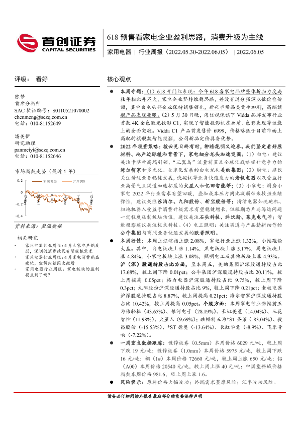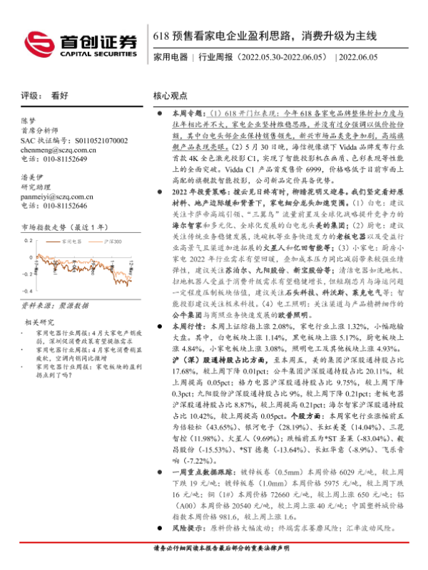 【首创证券】【20220605】20220605-首创证券-家用电器行业周报:618预售看家电企业盈利思路,消费升级为主线-17页