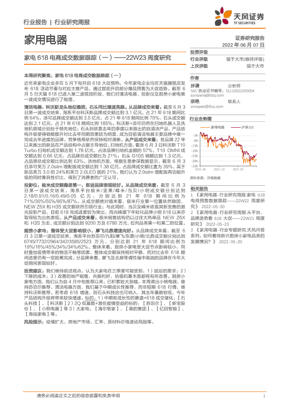 【天风证券】【20220607】家用电器22W23周度研究:家电618电商成交数据跟踪(一)-17页