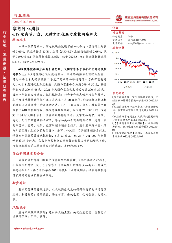 【东亚前海证券】【20220606】20220606-东亚前海证券-家电行业周报:6.18电商节开启,天猫京东优惠力度较同期加大-19页