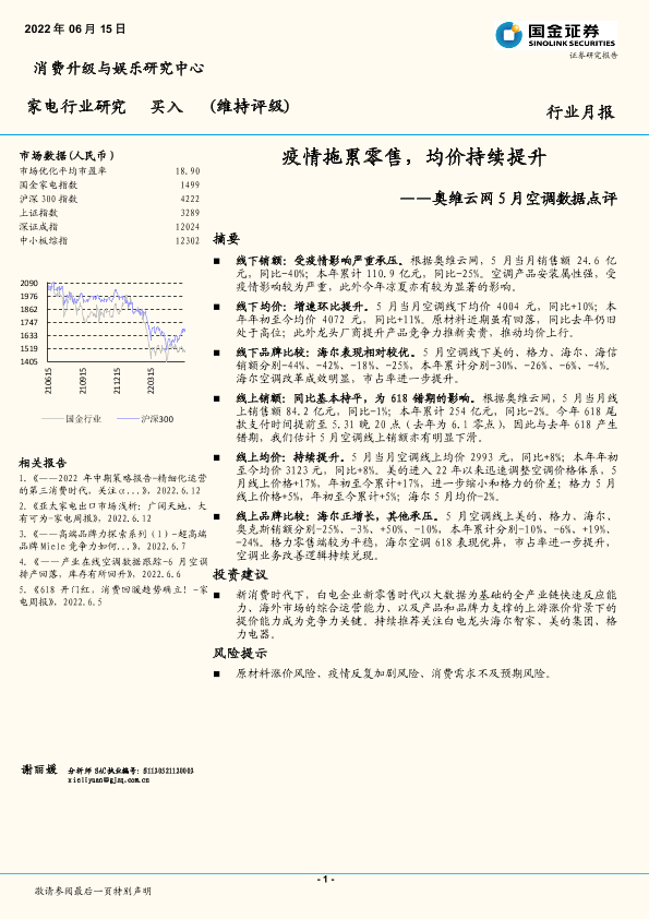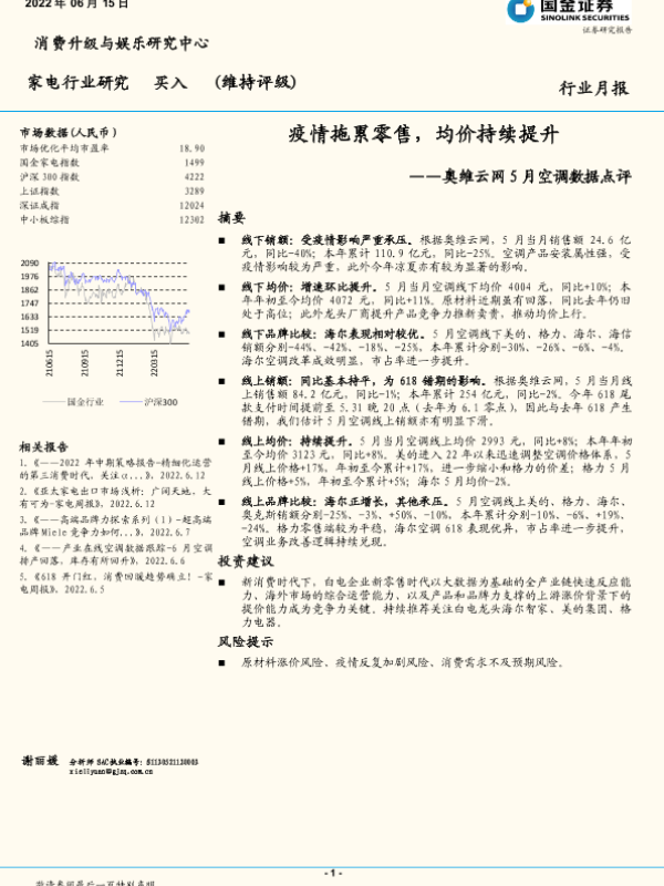 【国金证券】【20220615】奥维云网5月空调数据点评:疫情拖累零售,均价持续提升-6页