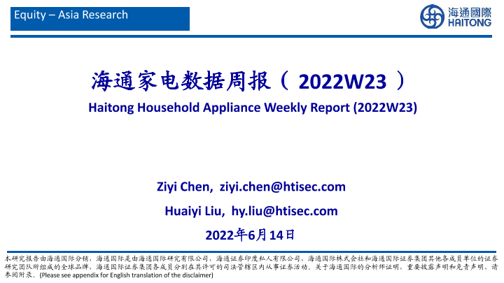 【海通国际】【20220614】海通家电数据周报(2022W23)-39页