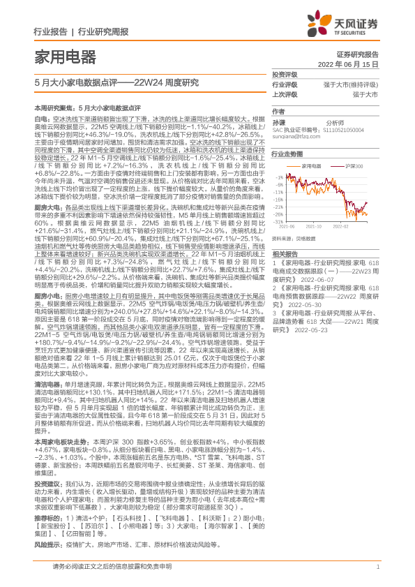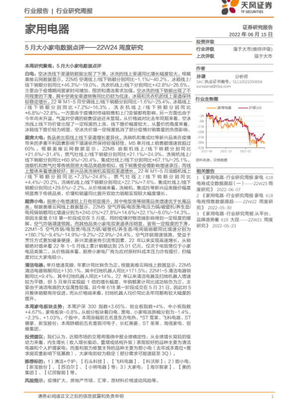 【天风证券】【20220615】家用电器22W24周度研究:5月大小家电数据点评-16页