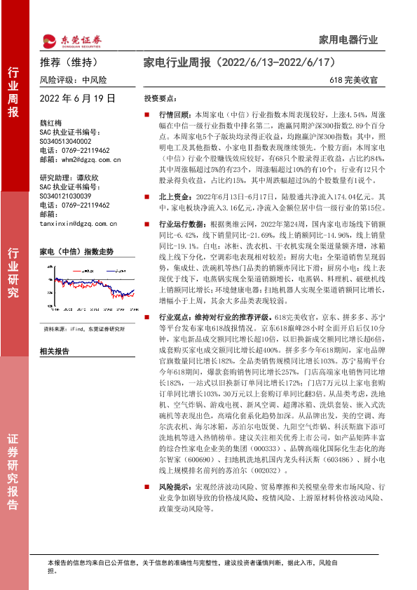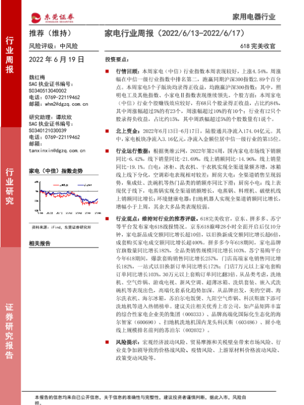 【东莞证券】【20220619】家电行业周报:618完美收官-16页