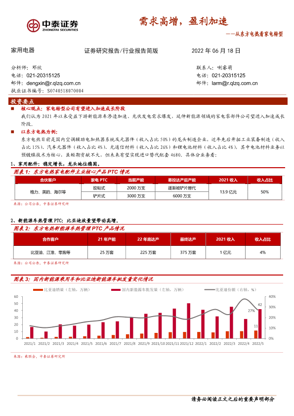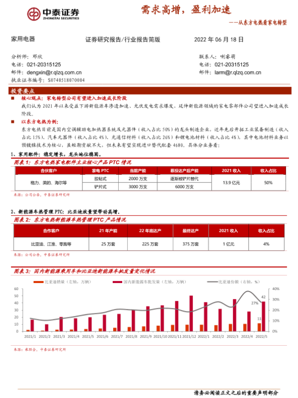 【中泰证券】【20220618】家用电器行业:从东方电热看家电转型-需求高增,盈利加速-4页