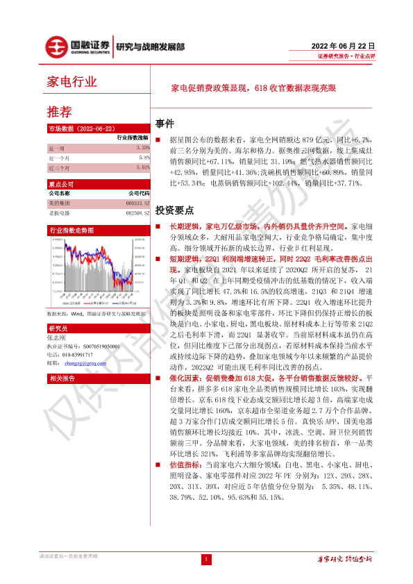 【国融证券】【20220622】家电行业点评:家电促销费政策显现,618收官数据表现亮眼-3页