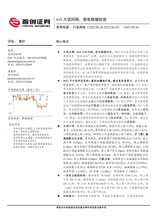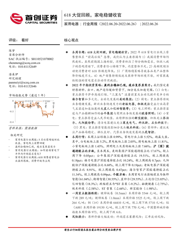 【首创证券】【20220626】20220626-首创证券-家用电器行业周报:618大促回顾,家电稳健收官-17页