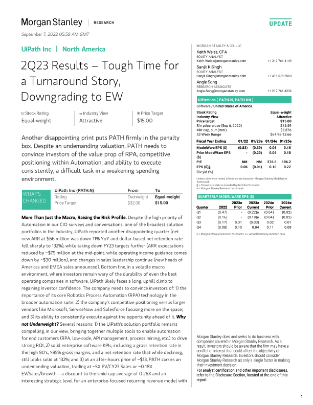 【Morgan Stanley】【20220907】Morgan Stanley-UiPath Inc 2Q23 Results – Tough Time for a Turnaround Story-16页