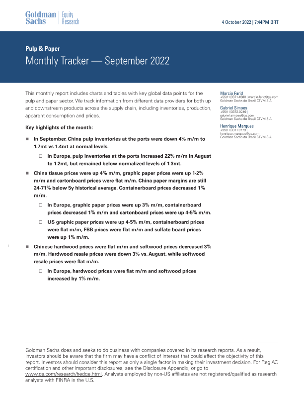 【Goldman Sachs】【20221004】Pulp & Paper_ Monthly Tracker — September 2022-15页