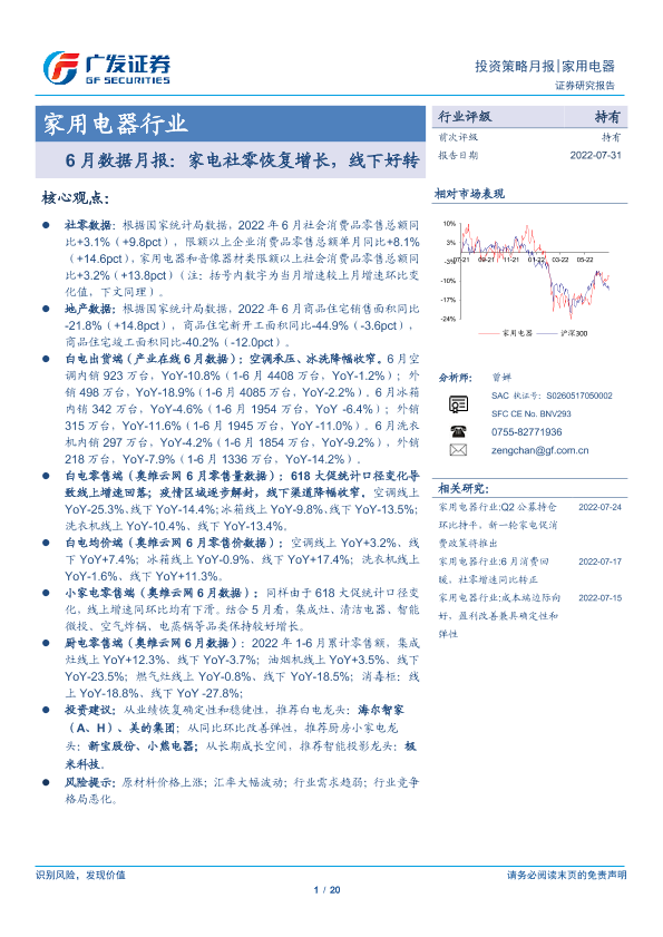 【广发证券】【20220731】20220731-广发证券-家用电器行业:6月数据月报:家电社零恢复增长,线下好转-20页
