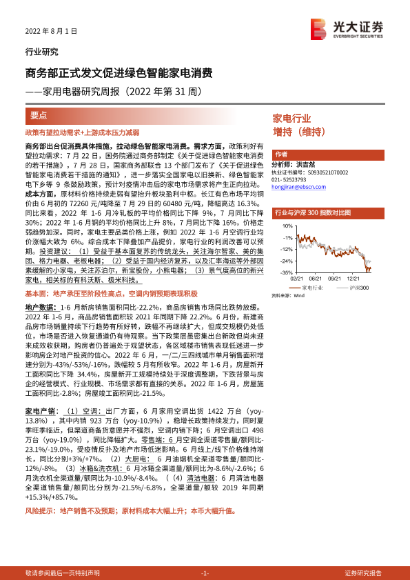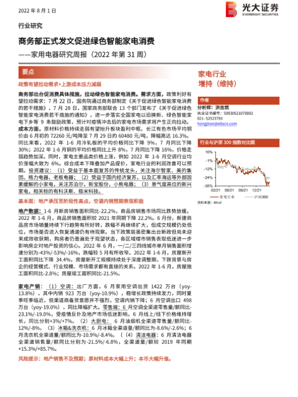 【光大证券】【20220801】家用电器研究周报(2022年第31周):商务部正式发文促进绿色智能家电消费-26页