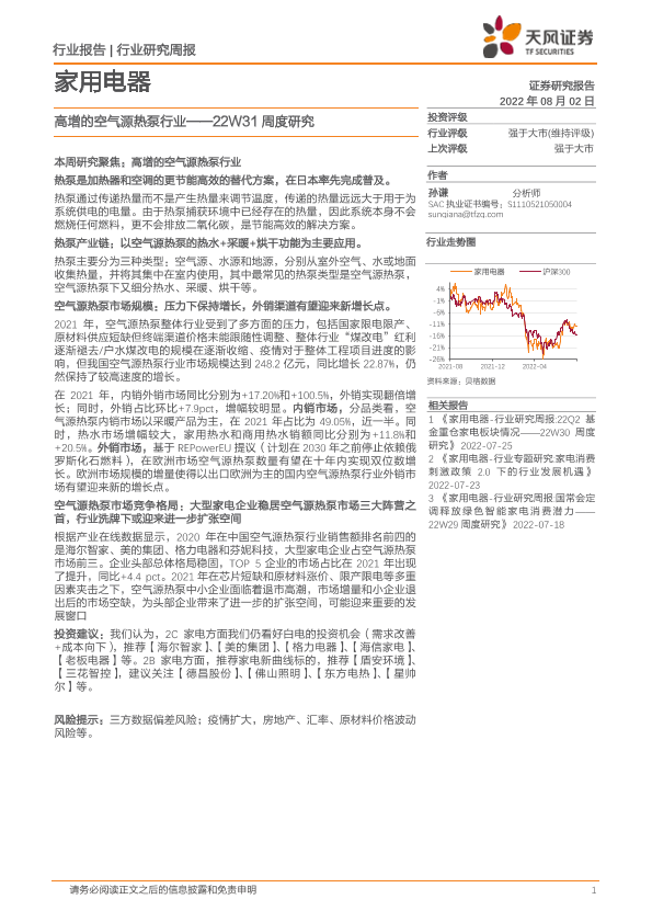 【天风证券】【20220802】家用电器22W31周度研究:高增的空气源热泵行业-16页