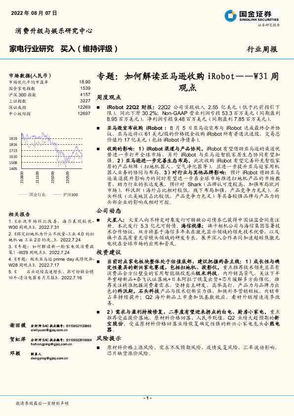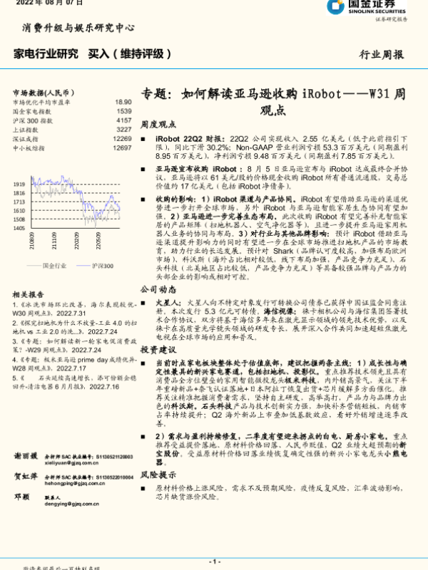 【国金证券】【20220807】20220807-国金证券-家电行业研究W31周观点:专题:如何解读亚马逊收购iRobot-16页
