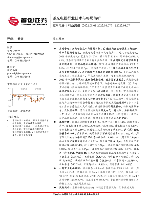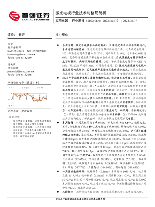 【首创证券】【20220807】家用电器行业周报:激光电视行业技术与格局简析-18页