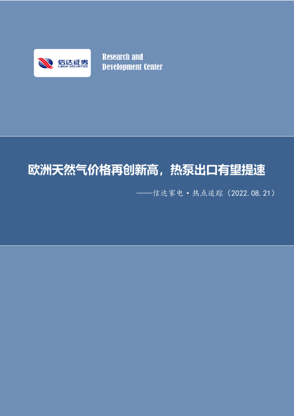 【信达证券】【20220821】信达家电·热点追踪:欧洲天然气价格再创新高,热泵出口有望提速-13页