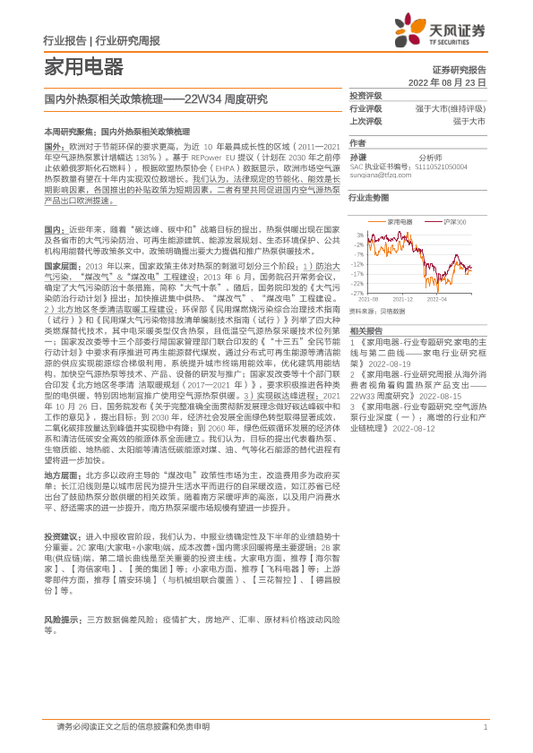 【天风证券】【20220823】家用电器22W34周度研究:国内外热泵相关政策梳理-15页
