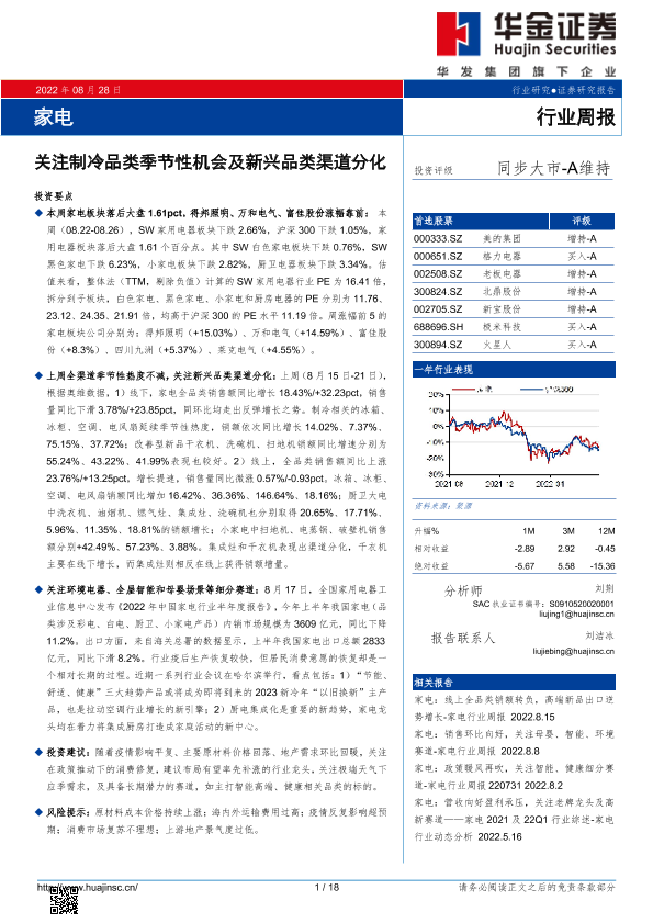 【华金证券】【20220828】家电行业周报:关注制冷品类季节性机会及新兴品类渠道分化-18页