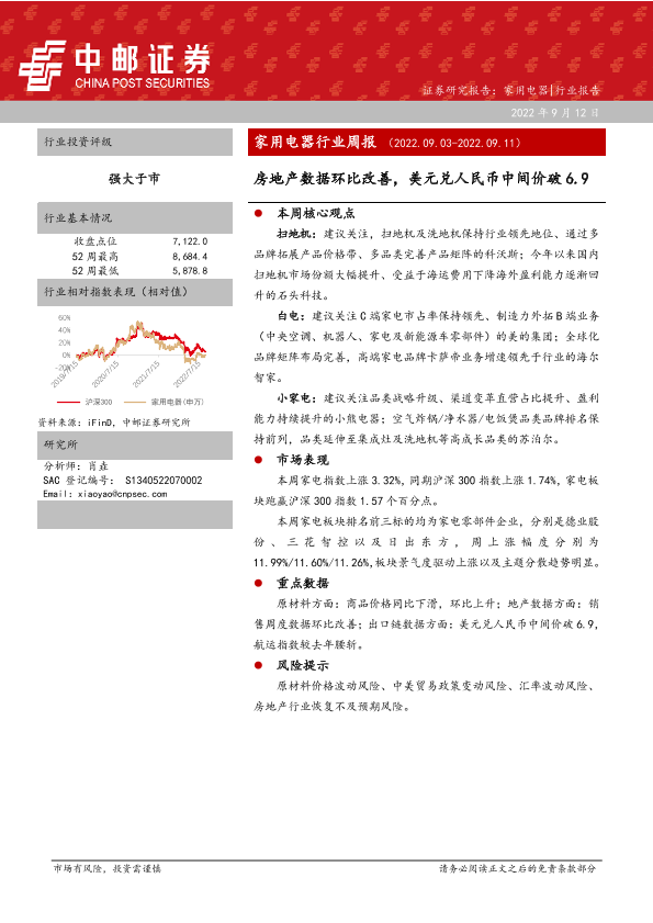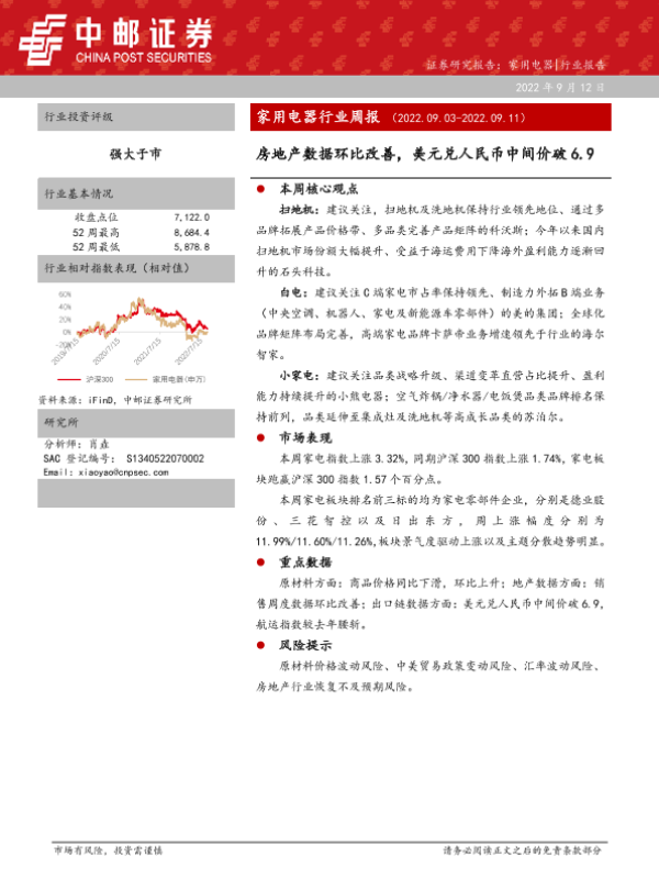 【中邮证券】【20220912】家用电器行业周报:房地产数据环比改善,美元兑人民币中间价破6.9-12页