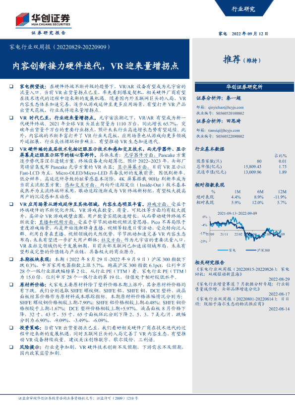 【华创证券】【20220912】家电行业双周报:内容创新接力硬件迭代,VR迎来量增拐点-32页