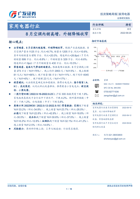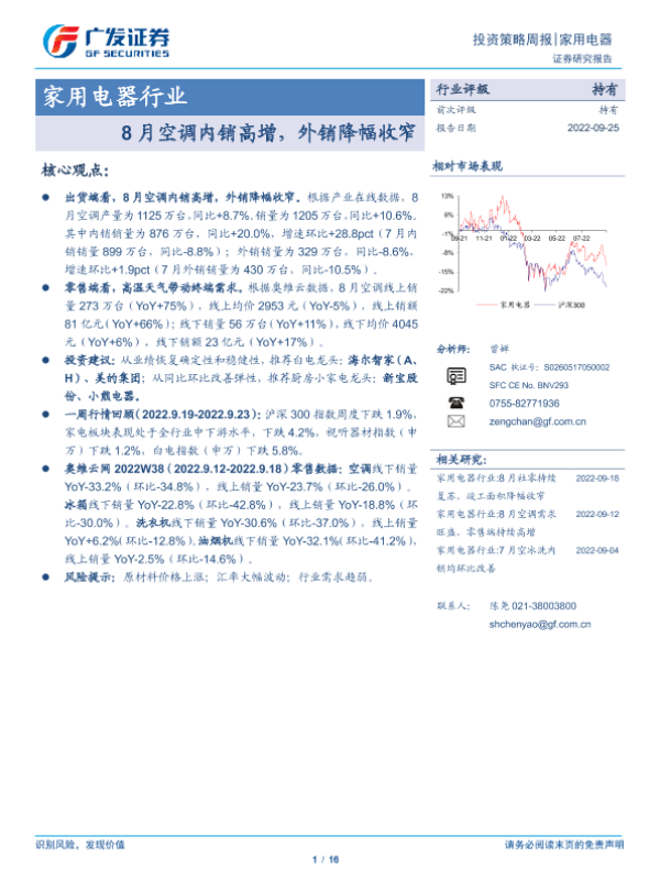 【广发证券】【20220925】20220925-广发证券-家用电器行业投资策略周报:8月空调内销高增,外销降幅收窄-16页