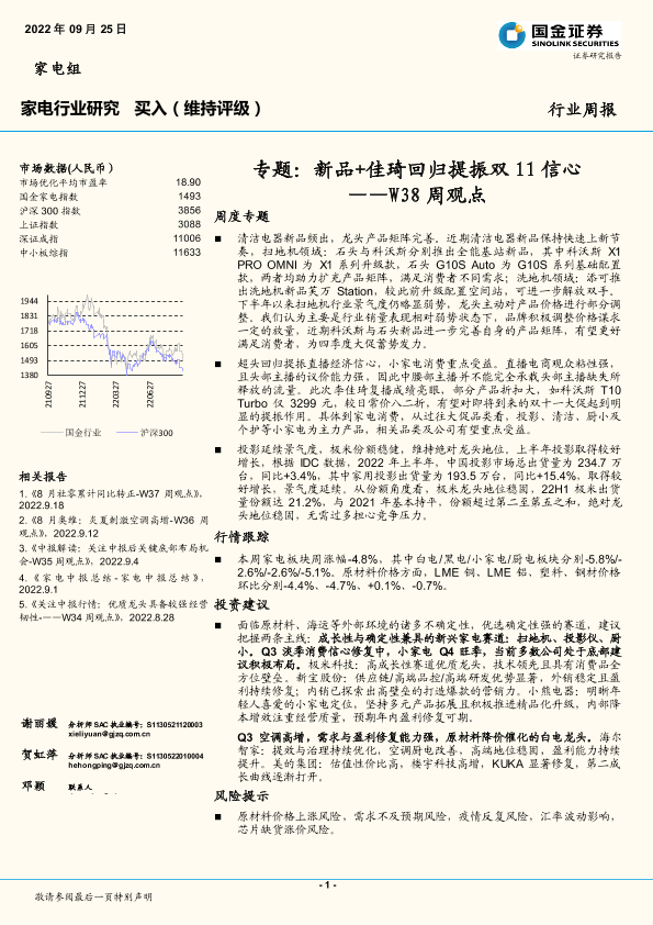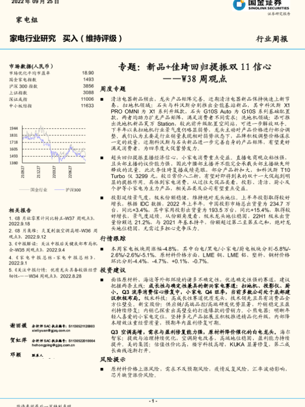 【国金证券】【20220925】20220925-国金证券-家电行业研究W38周观点:专题:新品+佳琦回归提振双11信心-16页