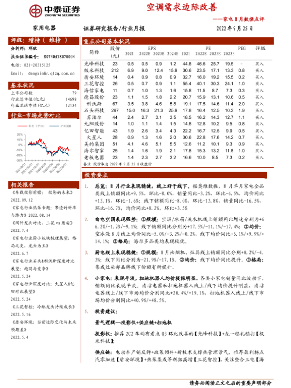 【中泰证券】【20220925】家电8月数据点评:空调需求边际改善-16页
