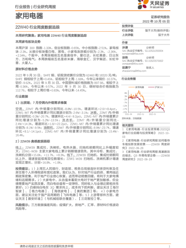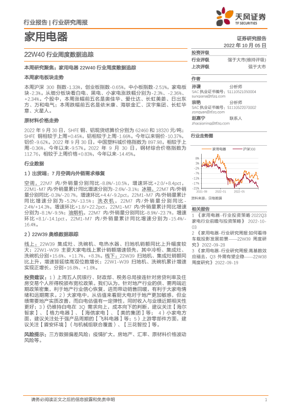 【天风证券】【20221005】家用电器:22W40行业周度数据追踪-12页