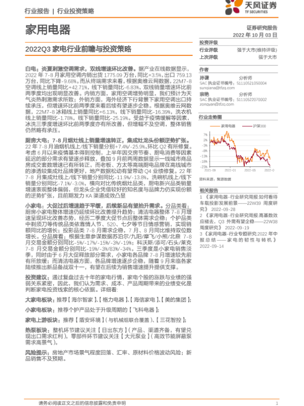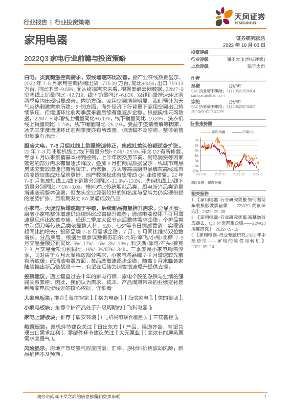 【天风证券】【20221003】2022Q3家电行业前瞻与投资策略-25页