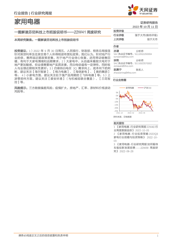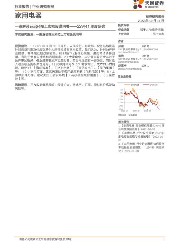 【天风证券】【20221011】20221011-天风证券-家用电器22W41周度研究:一图解读芬尼科技上市招股说明书-16页