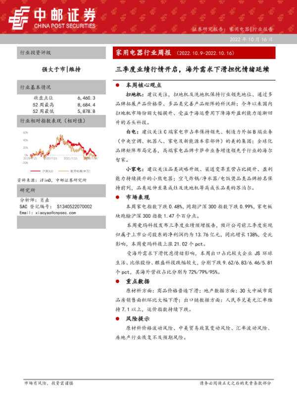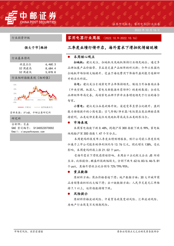 【中邮证券】【20221016】20221016-中邮证券-家用电器行业周报:三季度业绩行情开启,海外需求下滑担忧情绪延续-12页