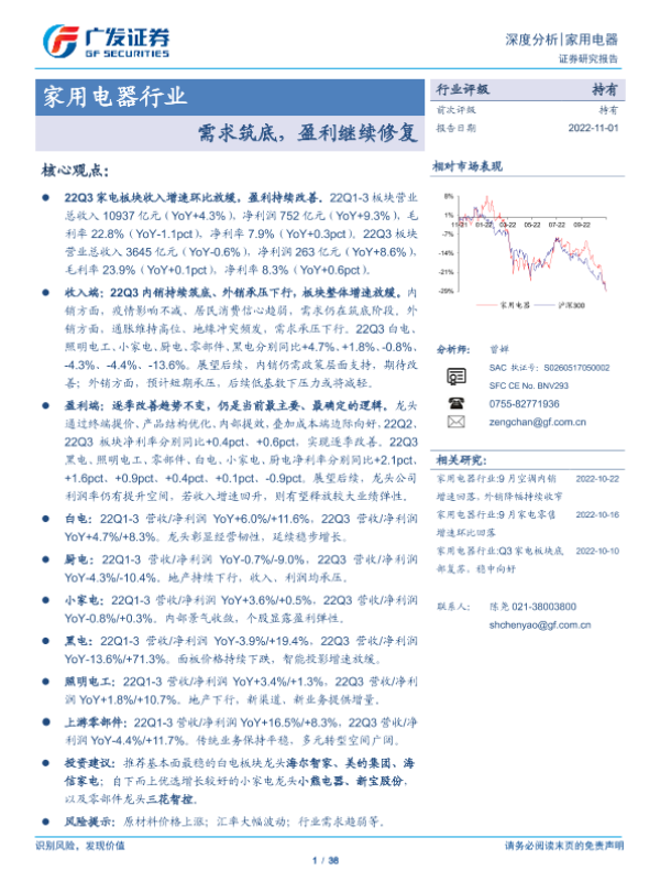 【广发证券】【20221101】家用电器行业深度分析:需求筑底,盈利继续修复-38页