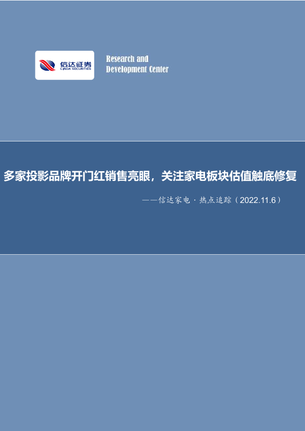 【信达证券】【20221106】信达家电·热点追踪:多家投影品牌开门红销售亮眼,关注家电板块估值触底修复-13页