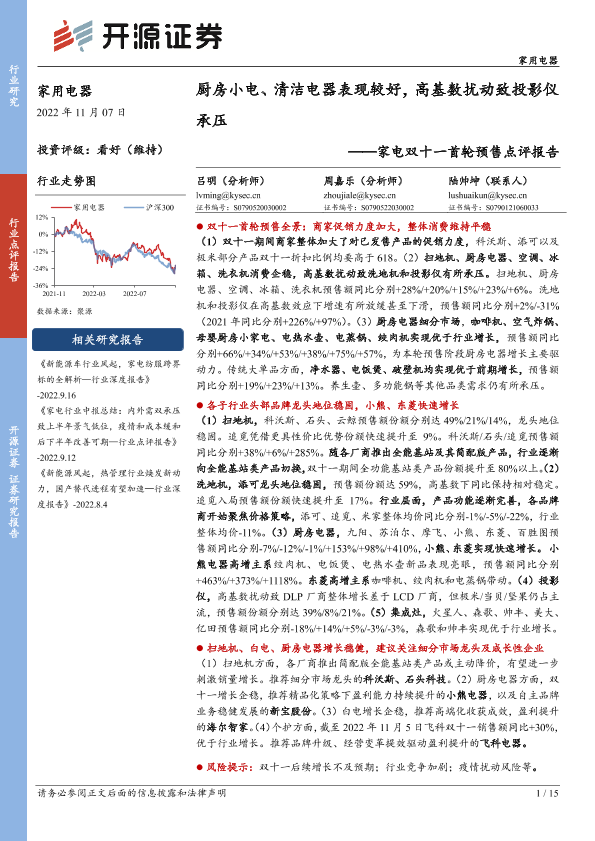 【开源证券】【20221107】家电双十一首轮预售点评报告:厨房小电、清洁电器表现较好,高基数扰动致投影仪承压-15页