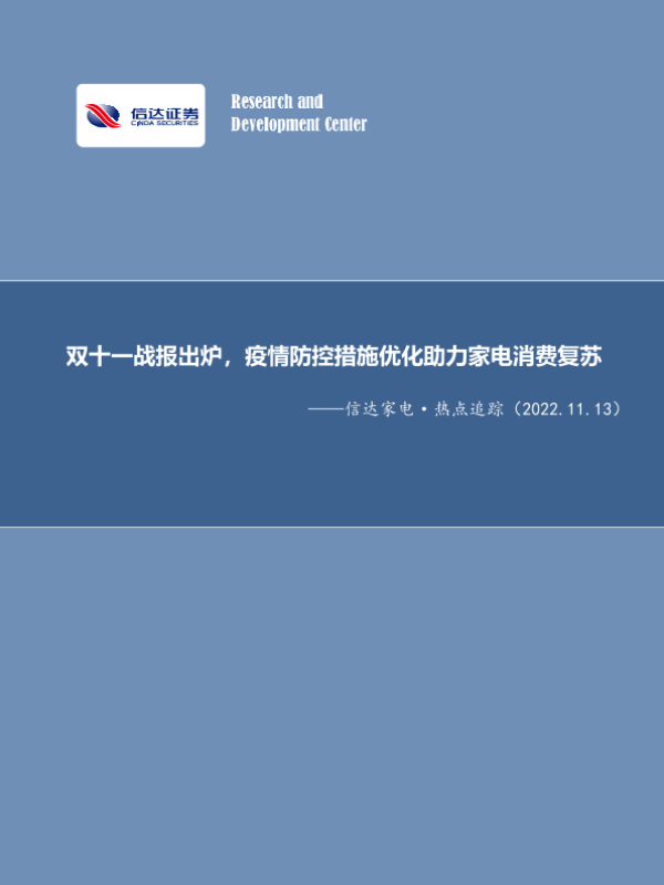 【信达证券】【20221113】双十一战报出炉,疫情防控措施优化助力家电消费复苏-11页