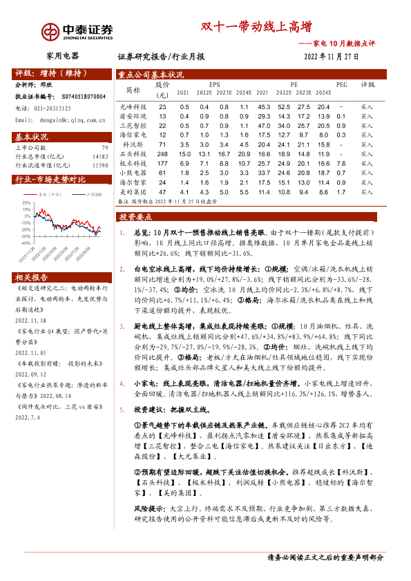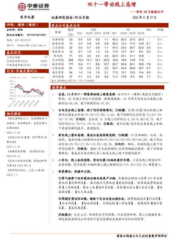 【中泰证券】【20221127】家电10月数据点评:双十一带动线上高增-14页