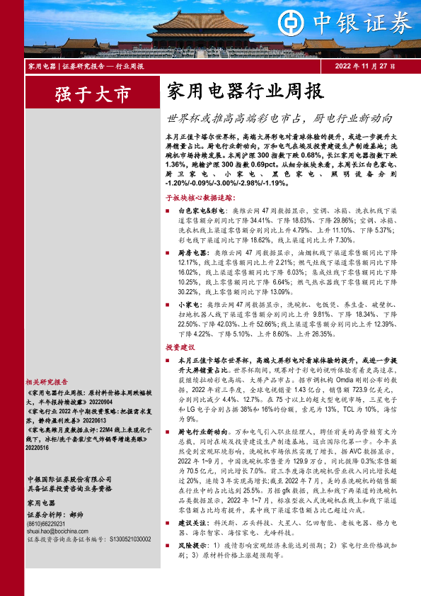 【中银证券】【20221127】20221127-中银证券-家用电器行业周报:世界杯或推高高端彩电市占,厨电行业新动向-29页