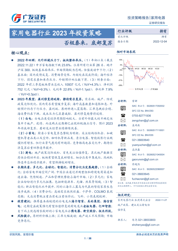 【广发证券】【20221204】家用电器行业2023年投资策略:否极泰来,底部复苏-38页