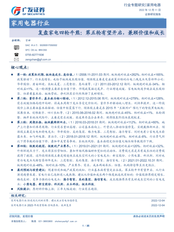 【广发证券】【20221211】复盘家电四轮牛熊:第五轮有望开启,兼顾价值和成长-35页